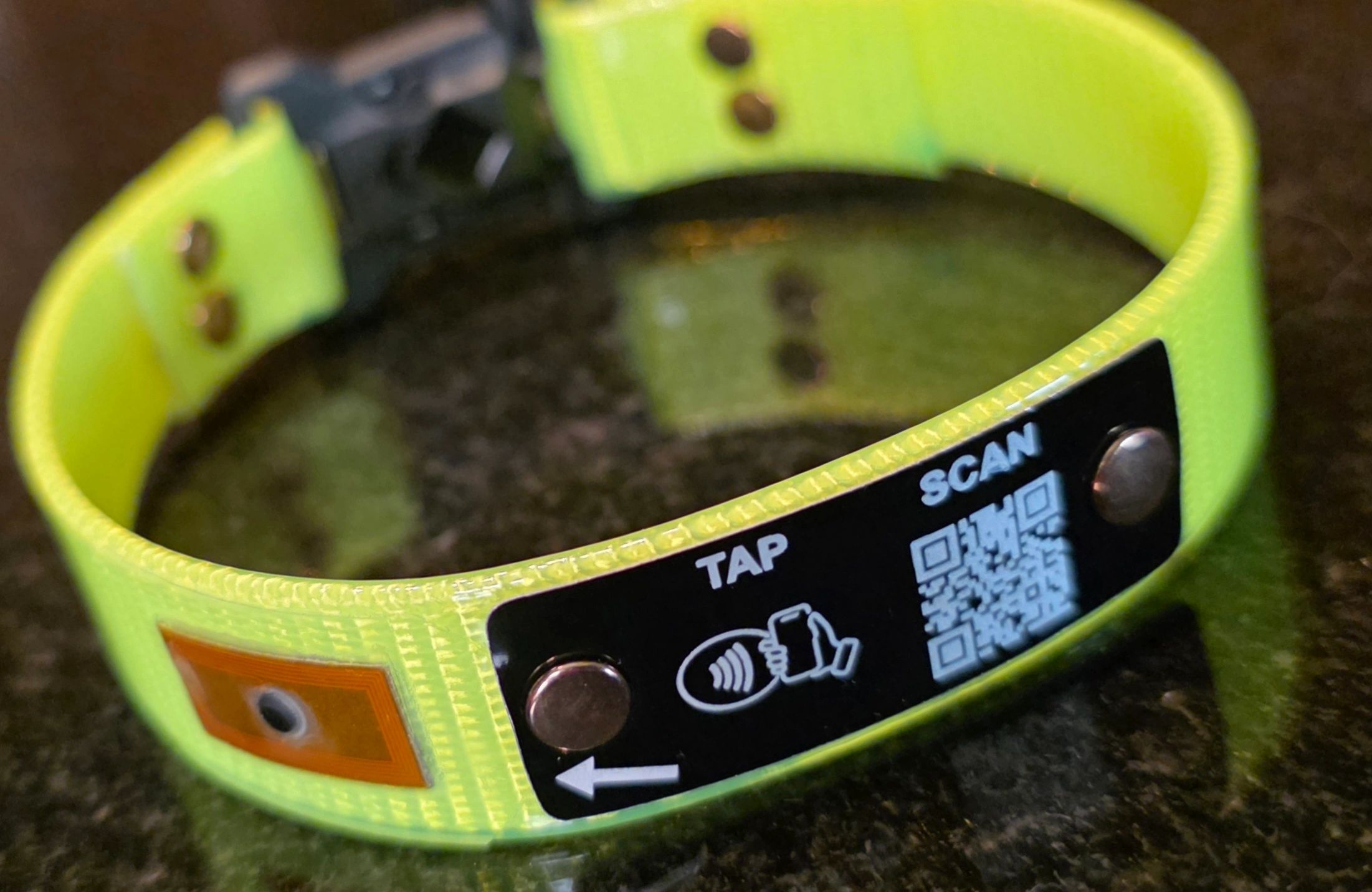 An always-on safety collar, inspired by a medical ID bracelet—so your pet is never without identification and you can be reached instantly.”